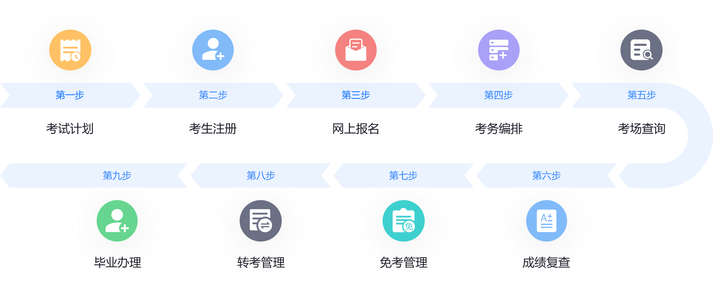 为省级教育考试院高等教育自学考试业务提供完整的信息化建设方案,实现省自考办、地市州自考办、高校自考业务同 一网络、同一平台、数据共享互通,一站式管理
